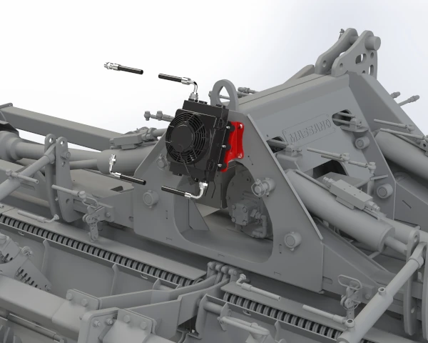 Provides an independent hydraulic power supply to the motorised roller, making it autonomous from the tractor. The heat exchanger keeps the oil temperature stable, preventing overheating and ensuring consistent performance even under extreme conditions.