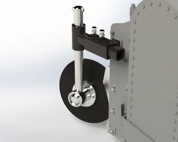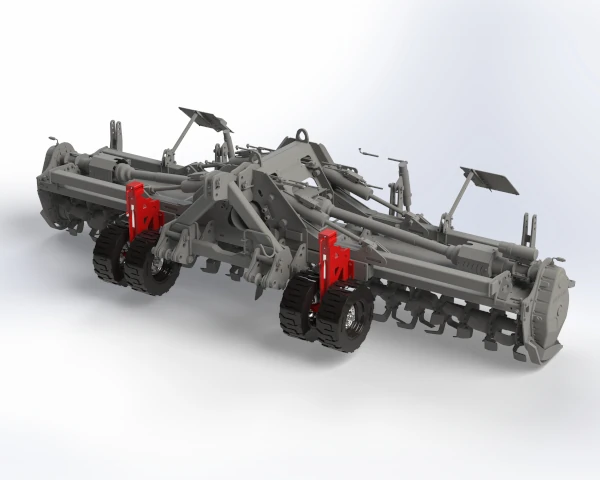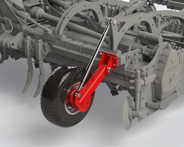The front wheels, combined with the bed former shaper, ensure precise adjustment of working depth. Unlike rear wheels, they do not interfere with the rollers and allow independent adjustment between roller and wheels