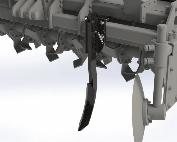 The Frangiter rotor represents a technological advancement in soil tillage, specifically designed for clayey, compact, and hard-to-manage soils. Its aggressive yet controlled action is ensured by sharp, angled hoe blades with a blade-like geometry, which break clods into fine, uniform particles, creating even and high-performing seedbeds. Thanks to its exclusive design, Frangiter optimizes power transmission to the ground, reducing the load on the tractor. The result is outstanding operational efficiency, with low energy consumption and reduced machine wear. The angled flanges, engineered for optimal soil flow, prevent material buildup even in high-moisture conditions, maintaining consistent working depth and soil refinement quality – even in the most challenging soils.